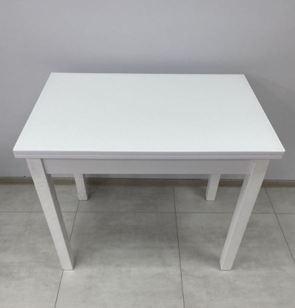 Стол кухонный раскладной Ажур белый с однотонным стеклом