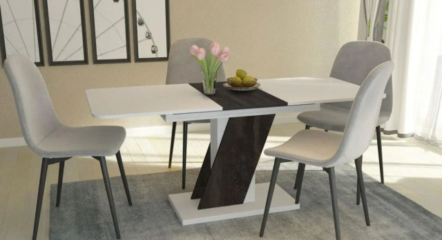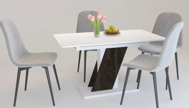 Стол Карло белый -угольный камень обеденный раскладной на одной ноге.