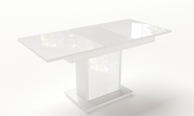 Стол раскладной Бостон белый с однотонным Белым стеклом.